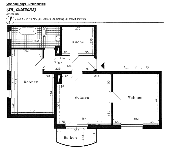 Bad mit Wanne, Balkon, Flur, Kellerraum, Küchenraum