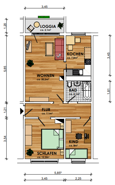 Wohnfläche ca.60,41 m²